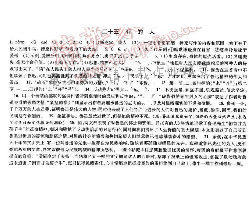 2017经纶学典新课时作业八年级语文下册江苏版 第五单元 二十五 有的人