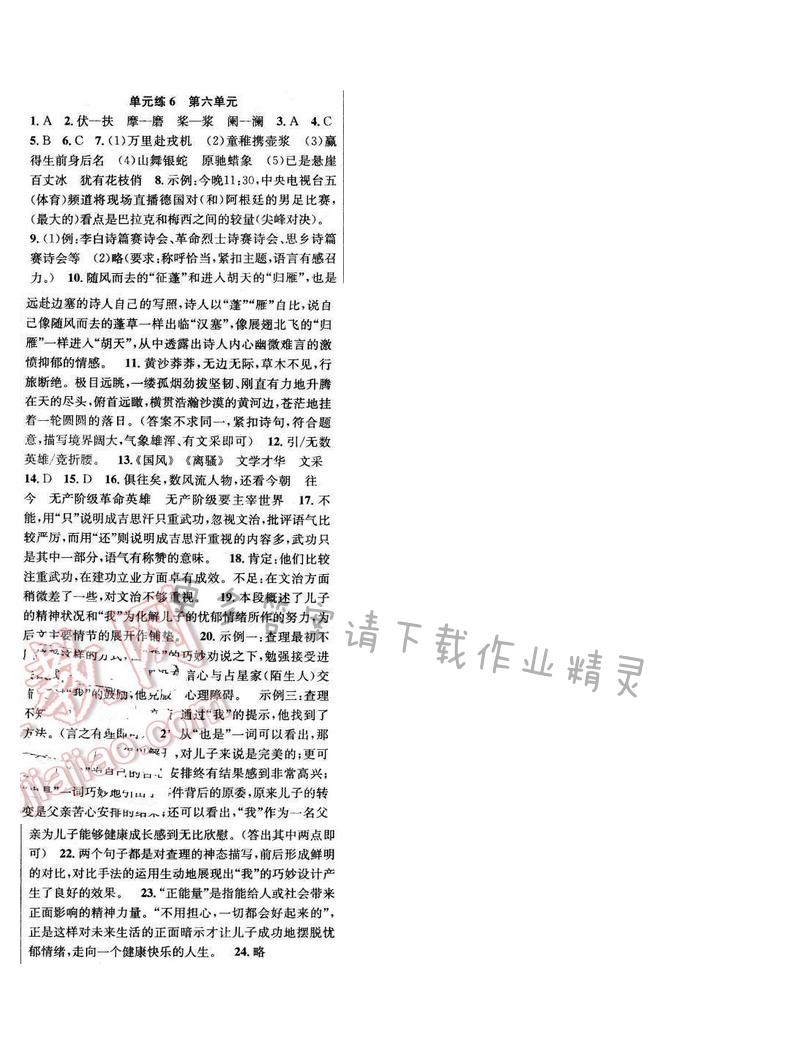 2016年提优训练非常阶段123七年级语文下册江苏版 单元练6