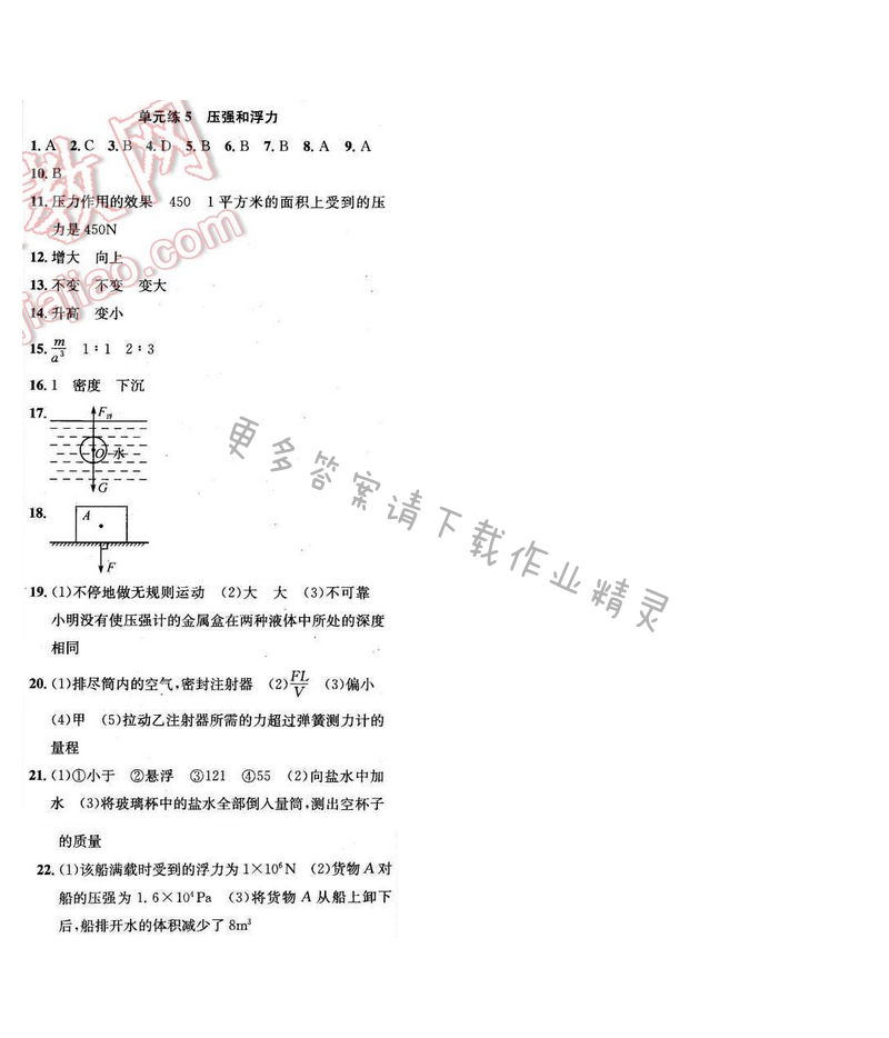 2017年提优训练非常阶段123八年级物理下册江苏版 单元练 5