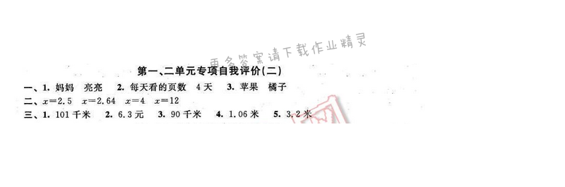 2016年优学有道绿色互动空间五年级数学下册江苏版第一、二单元专项自我评价(二)