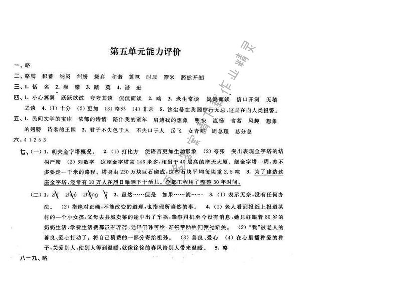 2016年优学有道绿色互动空间五年级语文下册江苏版第五单元能力评价