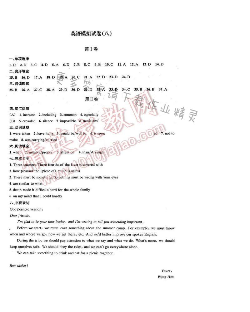 2016年优学有道绿色互动空间九年级英语下册 英语模拟试卷(八)