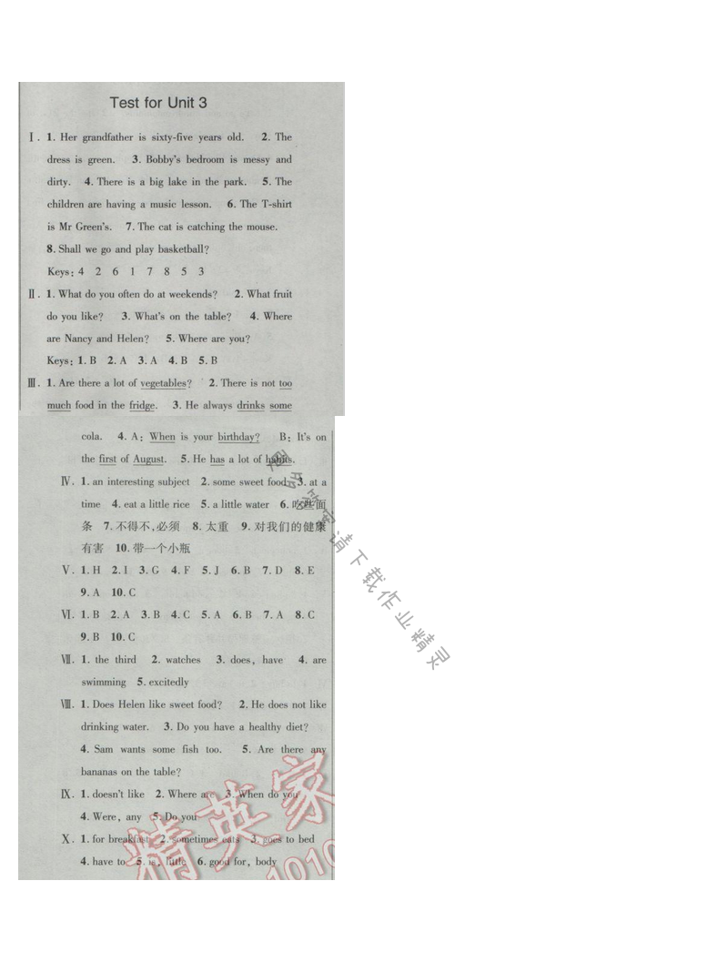 2017年新编金3练六年级英语下册江苏版 Test for Unit 3