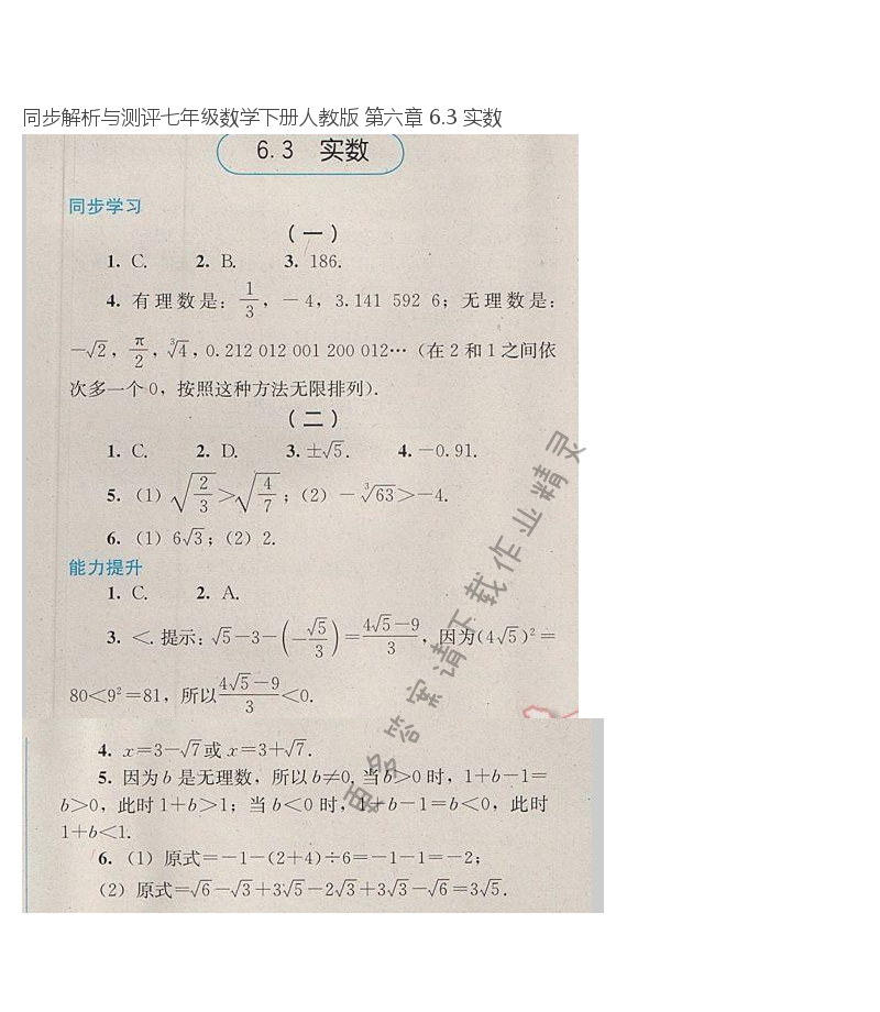 同步解析与测评七年级数学下册人教版 第六章 6.3 实数