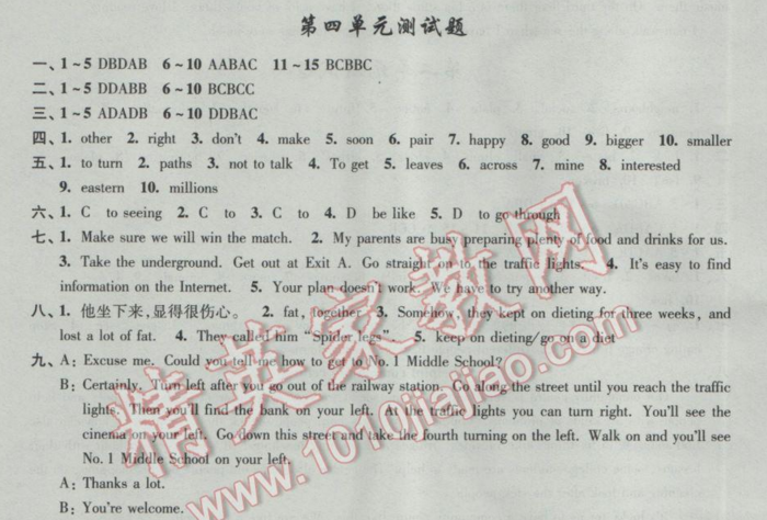 2017年新编金3练七年级英语下册江苏版 第四单元测试题