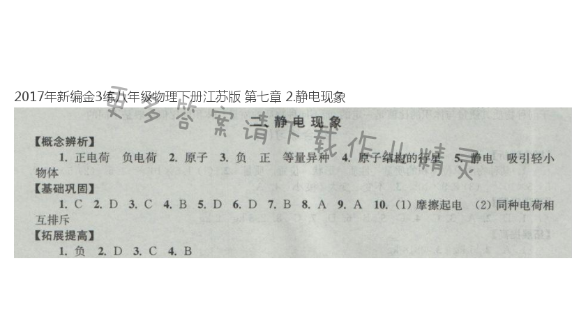 2017年新编金3练八年级物理下册江苏版 第七章 2.静电现象