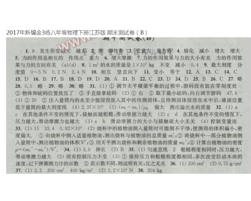2017年新编金3练八年级物理下册江苏版 期末测试卷(B)