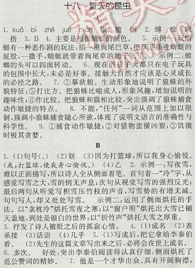 2017年课时提优计划作业本七年级语文下册苏教版 十八 夏天的昆虫