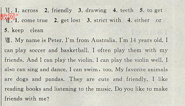 2017人教版启东黄冈作业本七年级英语下册 期中测试卷