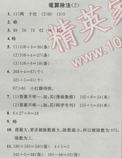 实验班提优训练三年级数学下册 第二单元 笔算除法(2)
