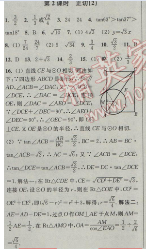 2017年苏教版百分百训练九年级数学 第七章2正切(2)