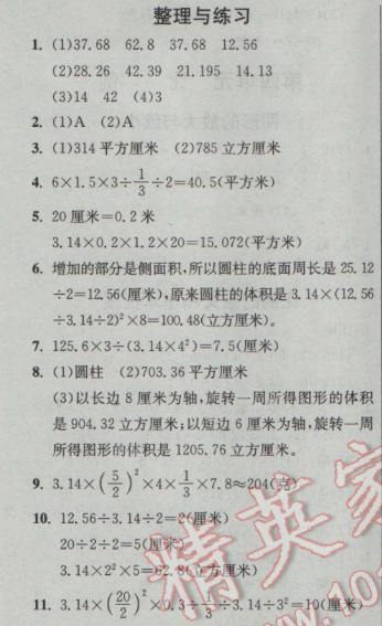实验班提优训练六年级数学下册 第二单元 整理与练习
