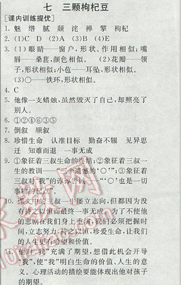 2017实验班提优训练七年级语文下册 第二单元 7 三颗枸杞豆