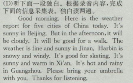 2017实验班提优训练七年级英语下册听力 第七单元综合提优测评卷