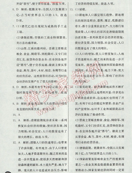 2017实验班提优训练七年级历史下册第三单元19 清朝前期社会经济的发展