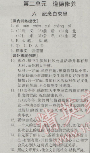 2017实验班提优训练八年级语文下册 第二单元6 纪念白求恩