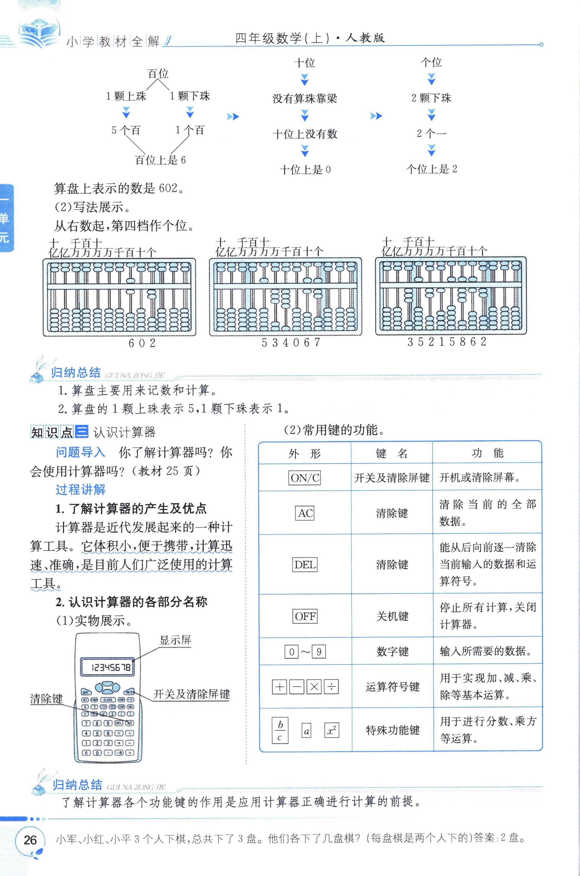 数学课本人教版四年级上 3.计算工具的认识、算盘、计算器