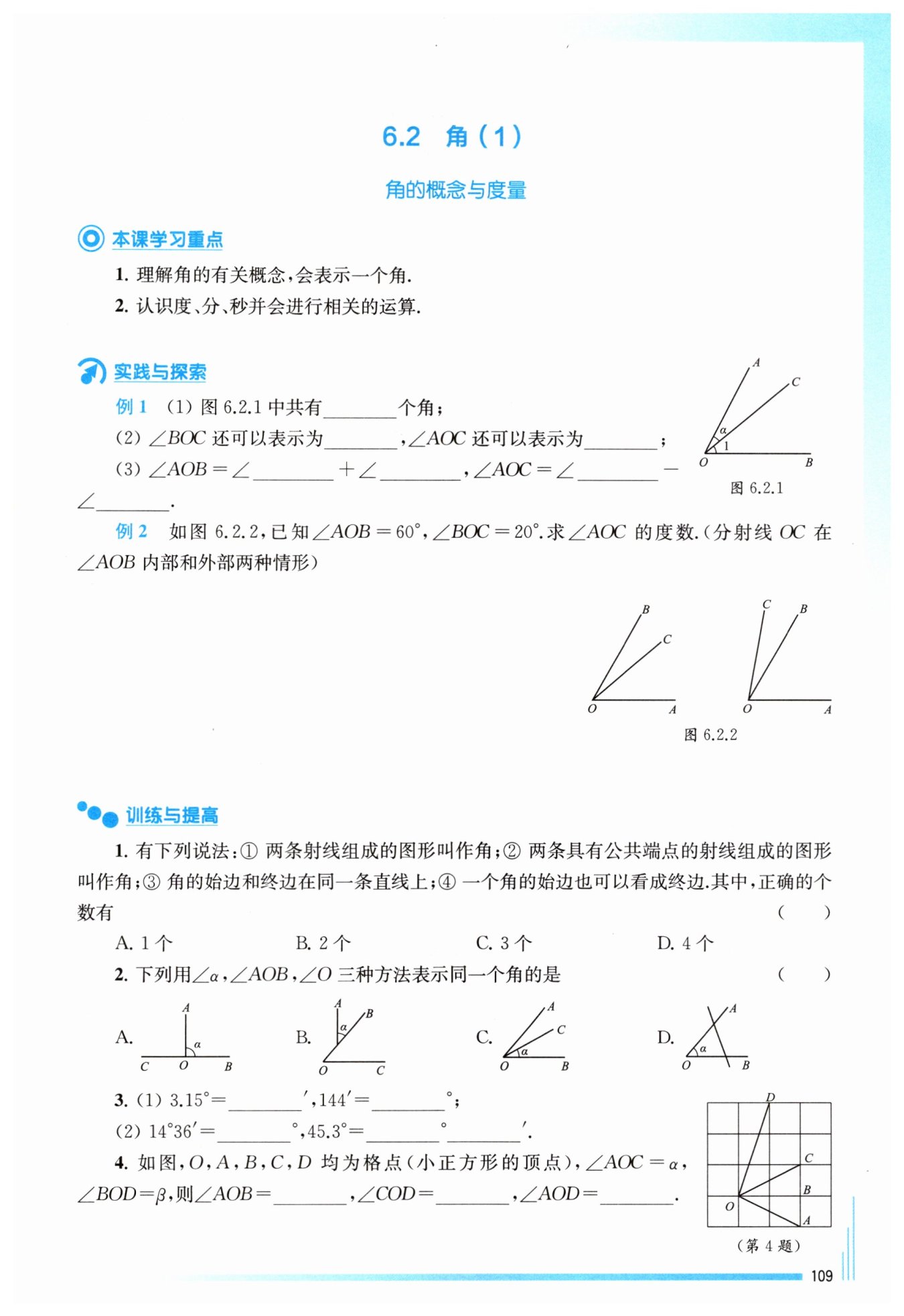 ①“两条射线组成的图形叫作角”是不准确的,因为这两条射线还需要有公共端点。