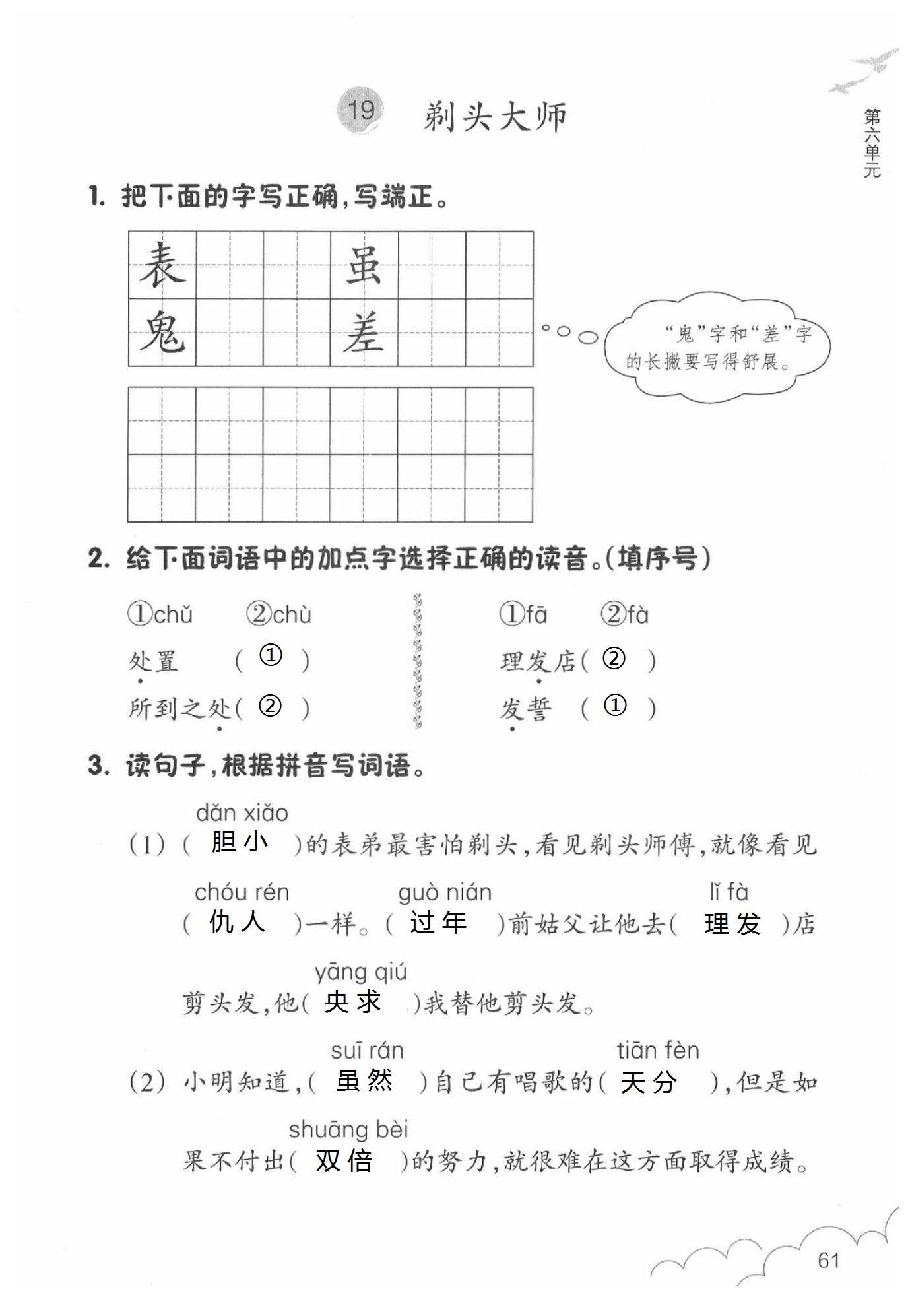 2020年语文作业本三年级下册人教版浙江教育出版社第61页