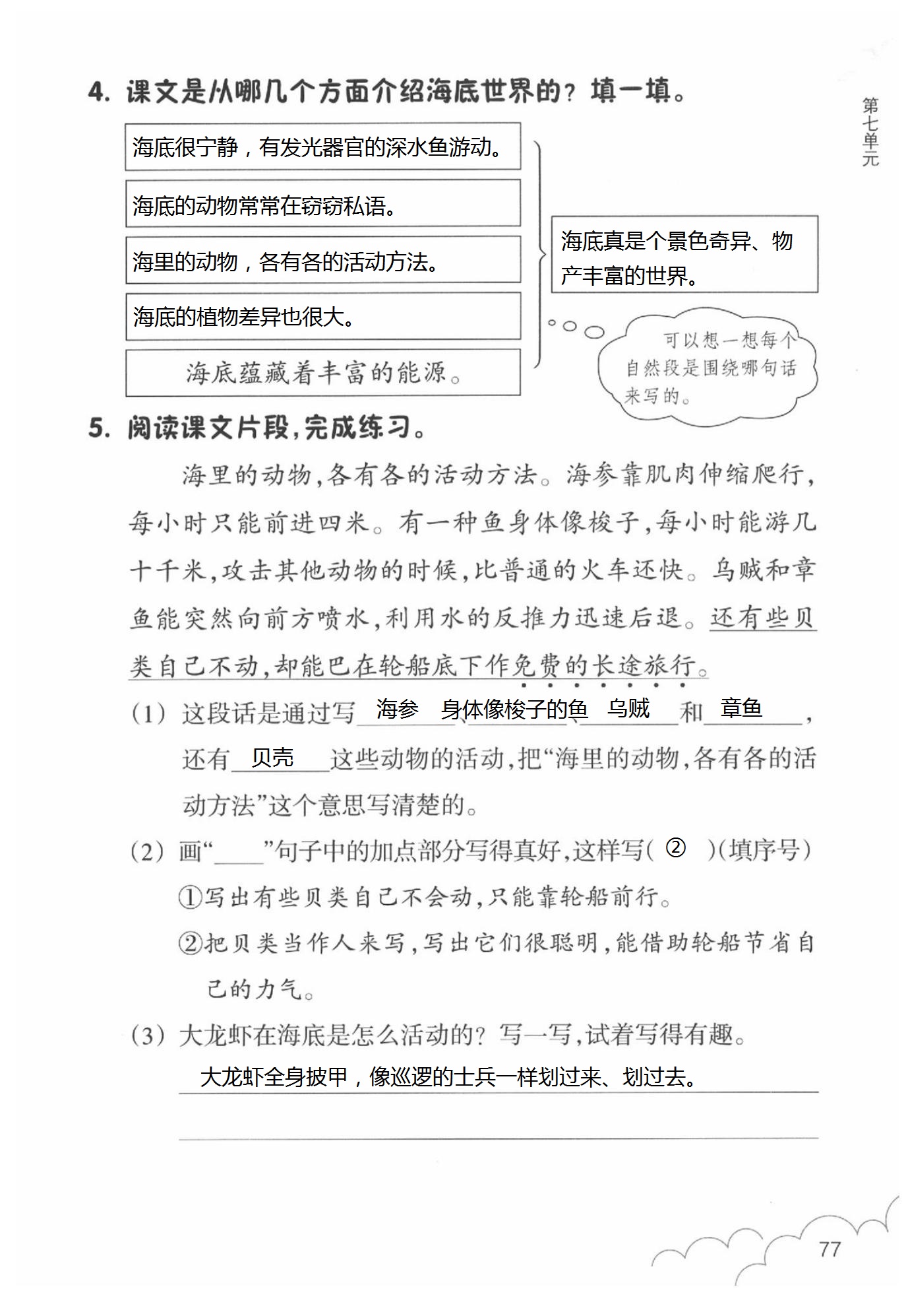 2020年语文作业本三年级下册人教版浙江教育出版社第77页
