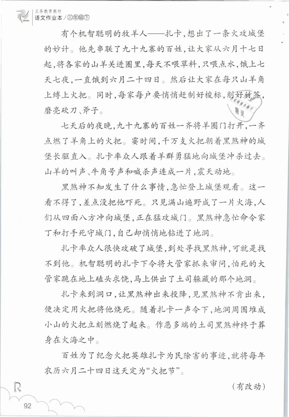 2020年语文作业本三年级下册人教版浙江教育出版社第91页