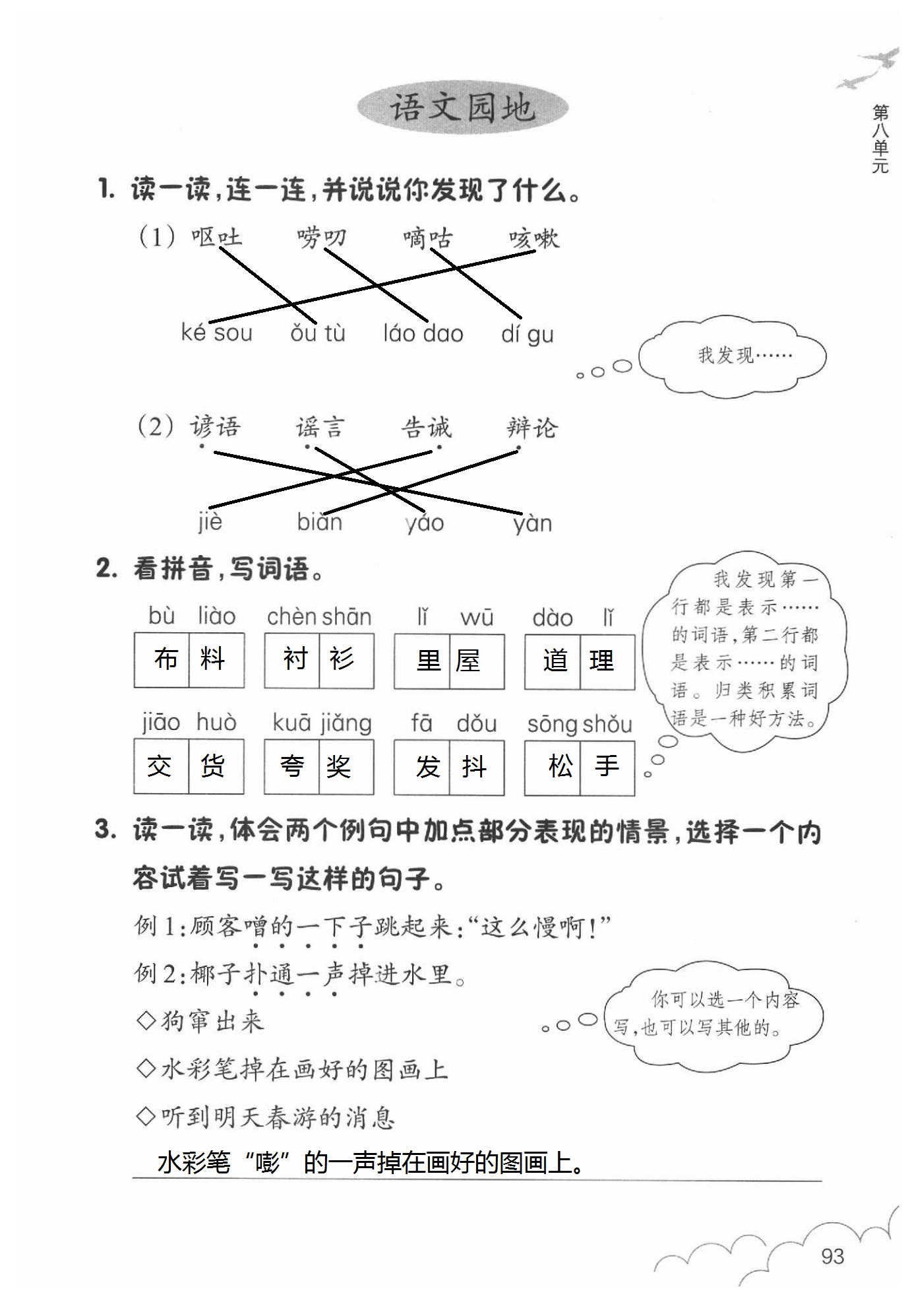2020年语文作业本三年级下册人教版浙江教育出版社第93页