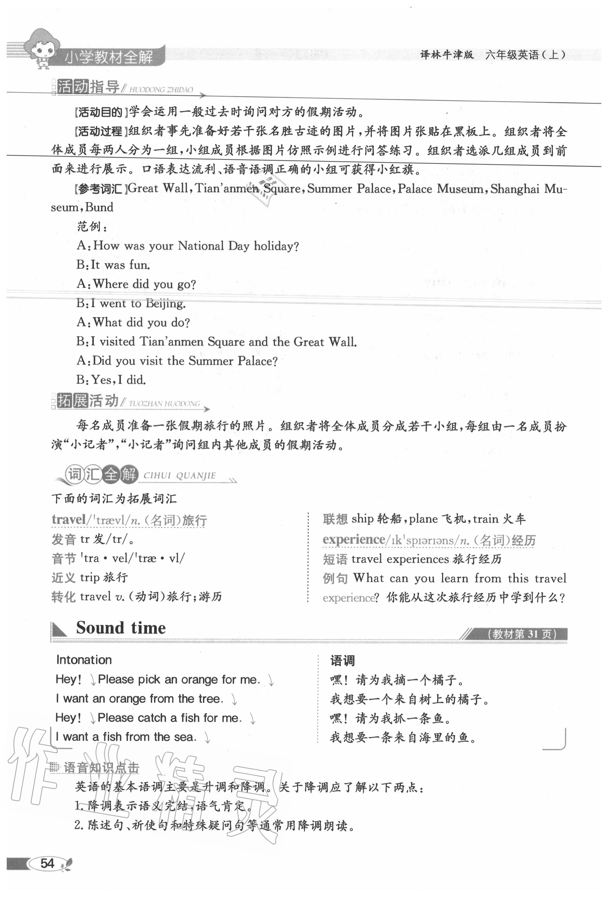 2020年教材课本六年级英语上册译林版参考答案第54页