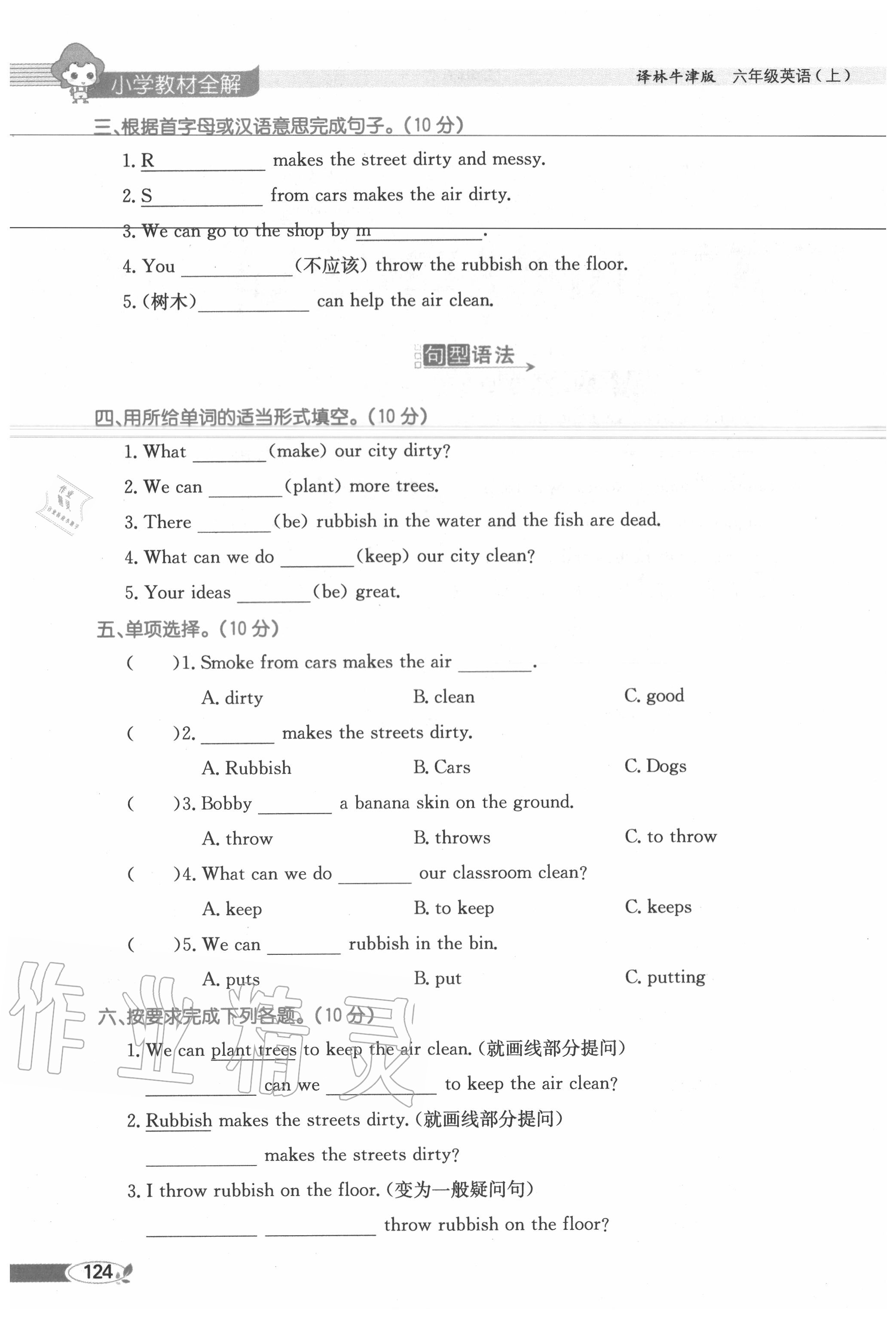 2020年教材课本六年级英语上册译林版参考答案第124页