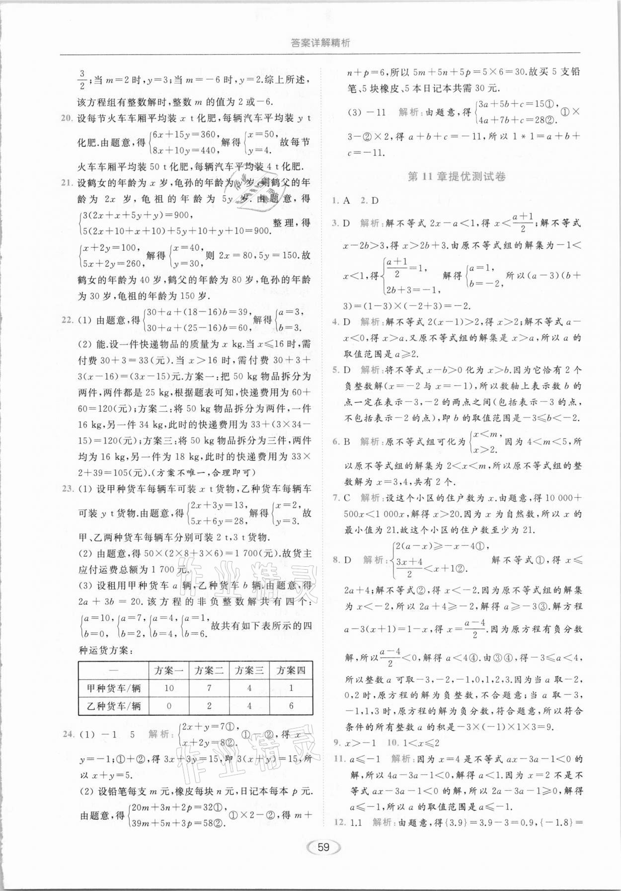 2021年亮点给力提优课时作业本七年级数学下册苏科版参考答案第59页