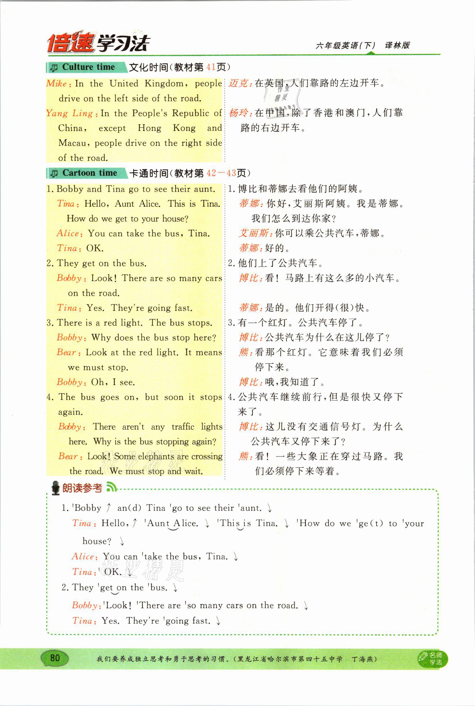 2021年教材课本六年级英语下册译林版参考答案第52页