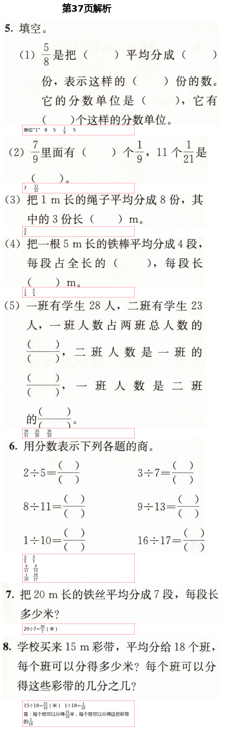 2021年人教金学典同步解析与测评五年级数学下册人教版第37页