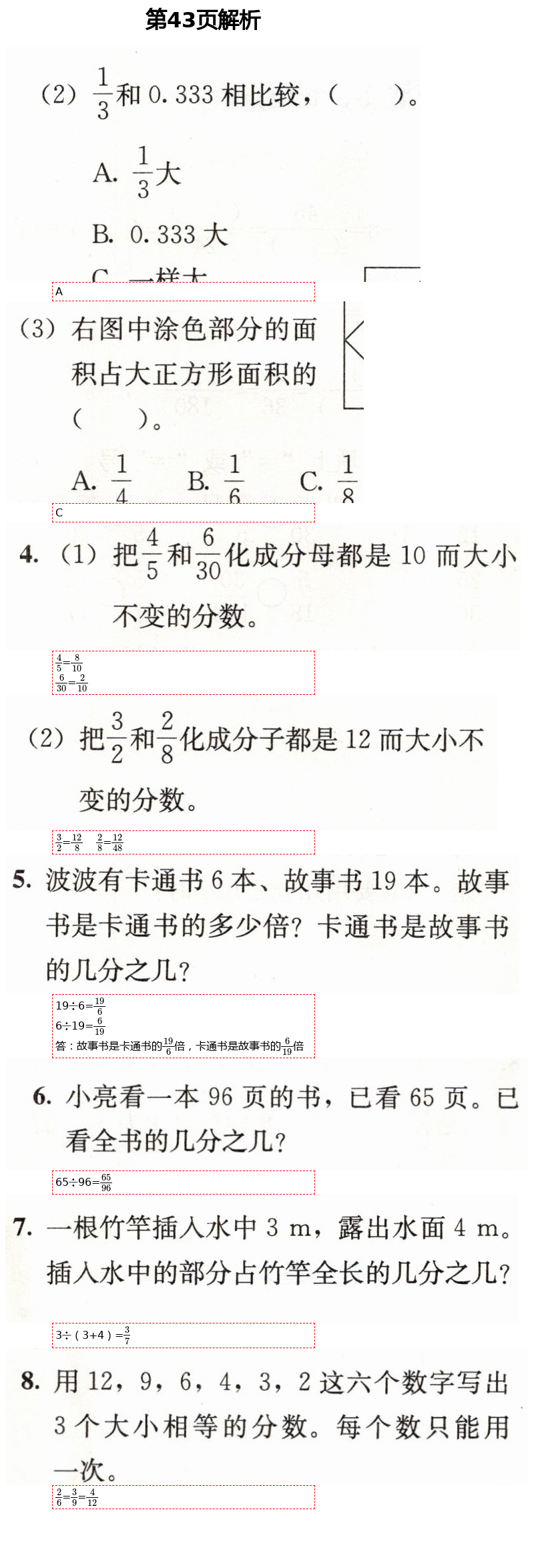 2021年人教金学典同步解析与测评五年级数学下册人教版第43页