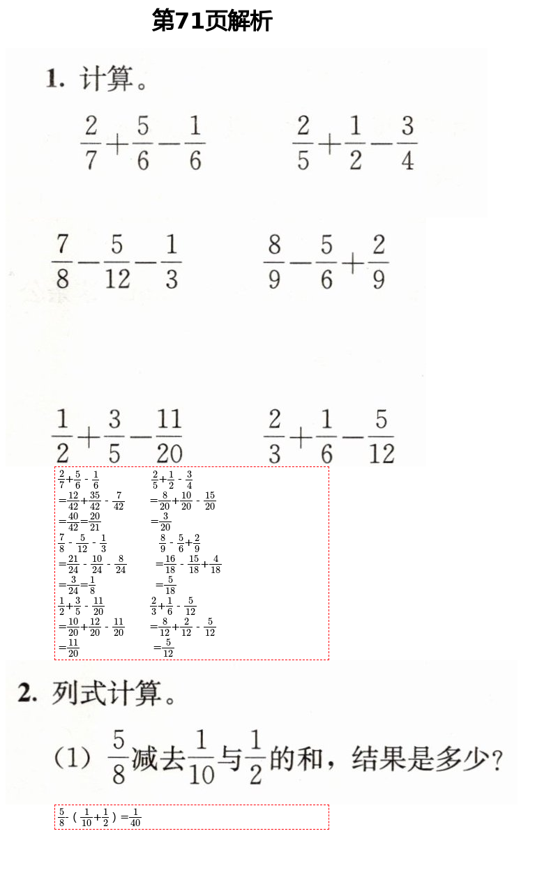 2021年人教金学典同步解析与测评五年级数学下册人教版第71页