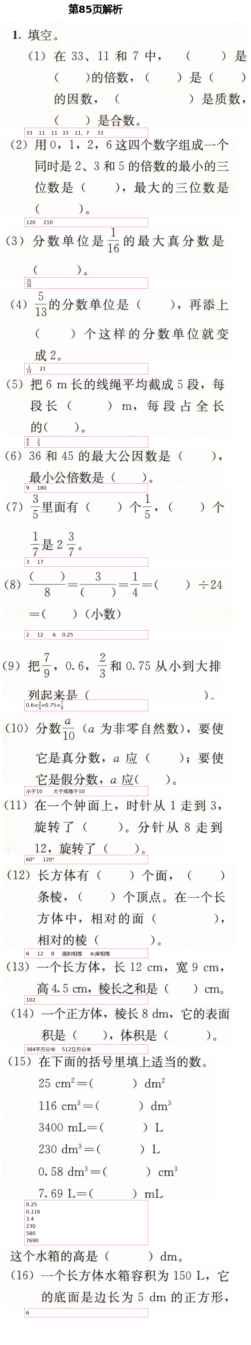2021年人教金学典同步解析与测评五年级数学下册人教版第85页