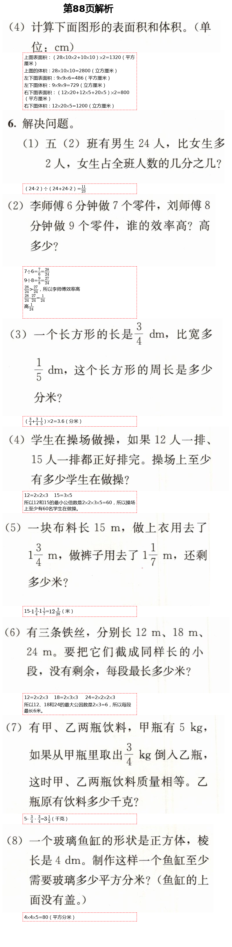 2021年人教金学典同步解析与测评五年级数学下册人教版第88页