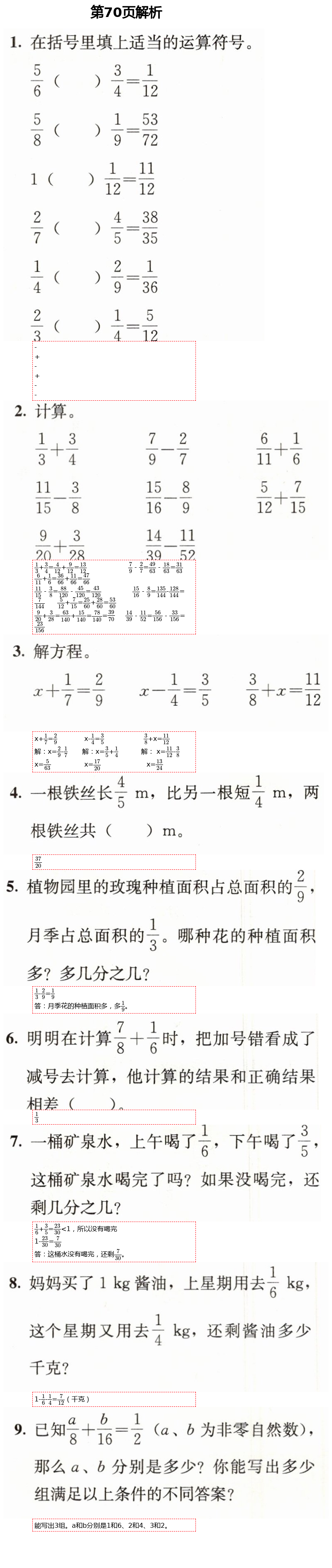 2021年人教金学典同步解析与测评五年级数学下册人教版第70页