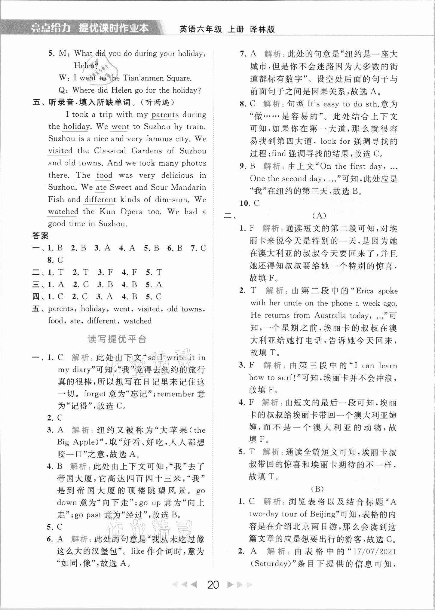 2021年亮点给力提优课时作业本六年级英语上册译林版第20页