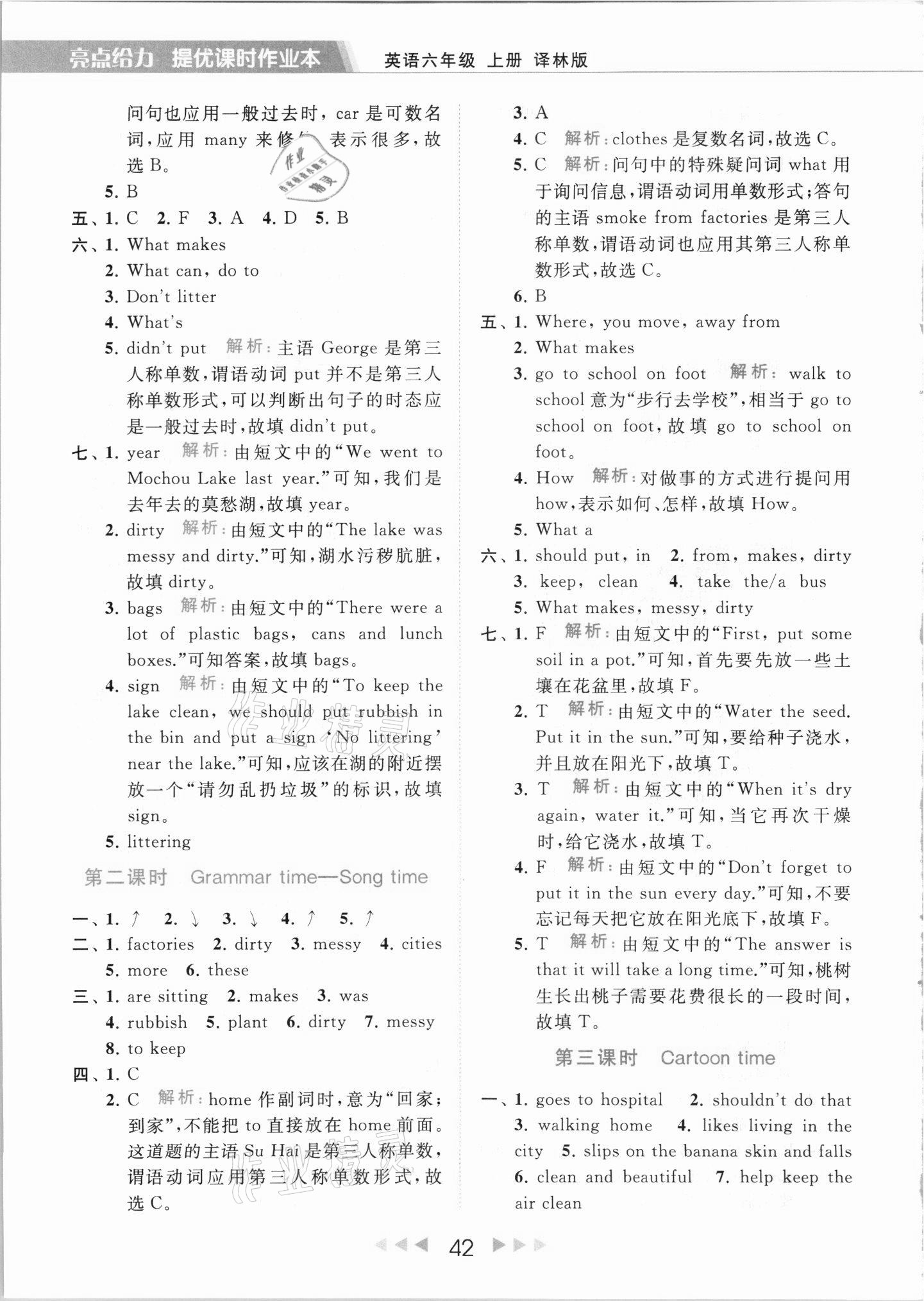 2021年亮点给力提优课时作业本六年级英语上册译林版第42页