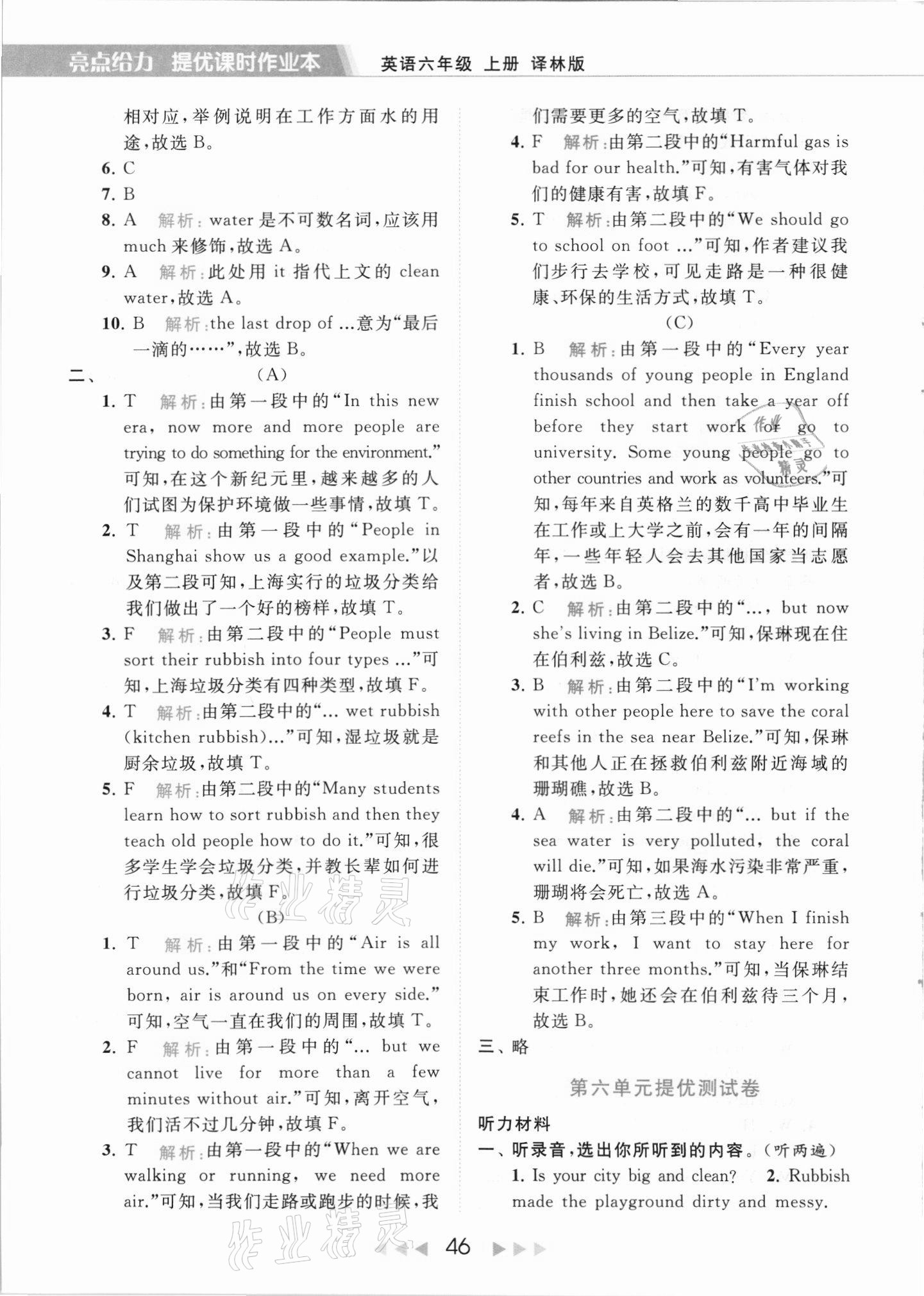 2021年亮点给力提优课时作业本六年级英语上册译林版第46页
