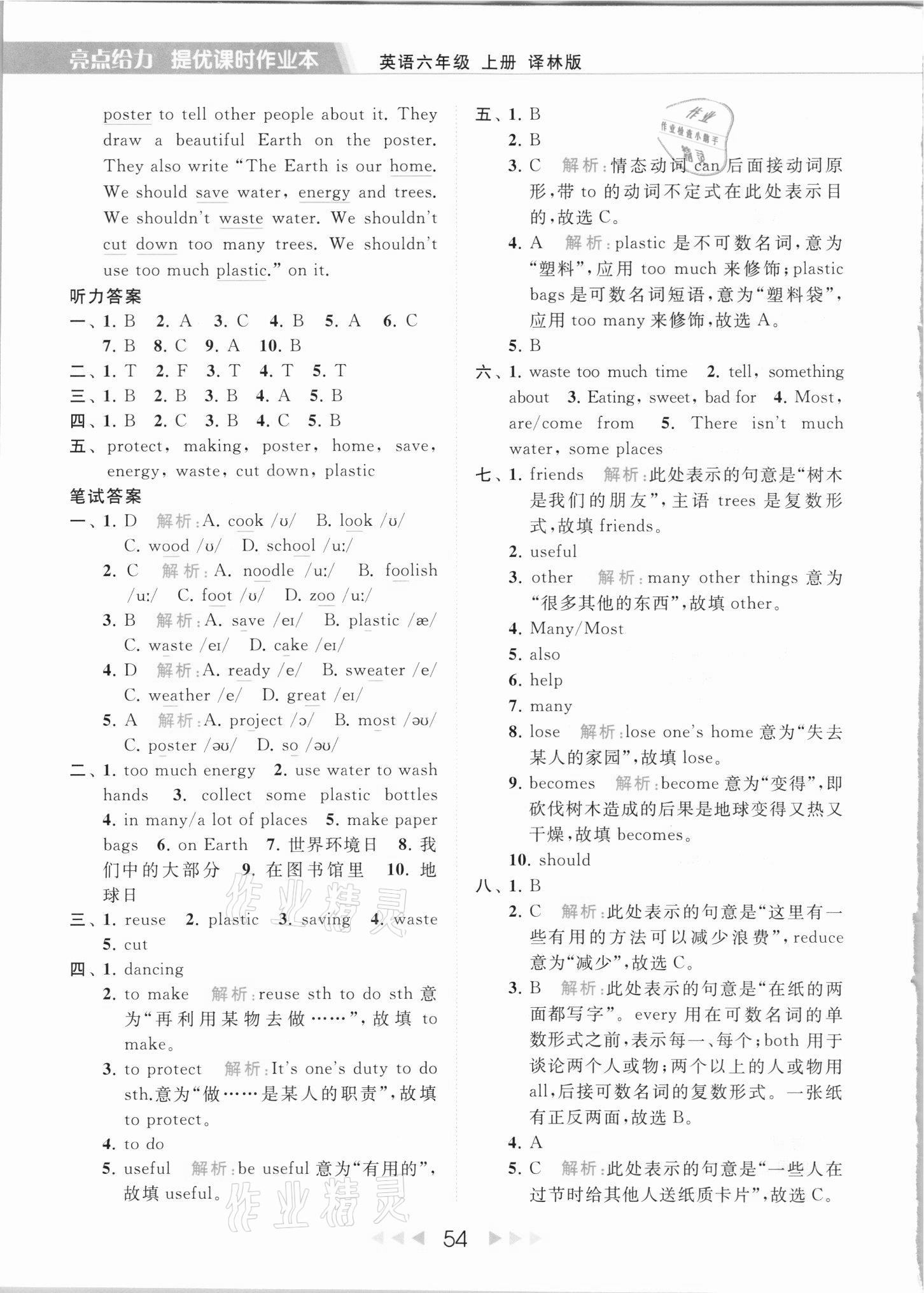 2021年亮点给力提优课时作业本六年级英语上册译林版第54页