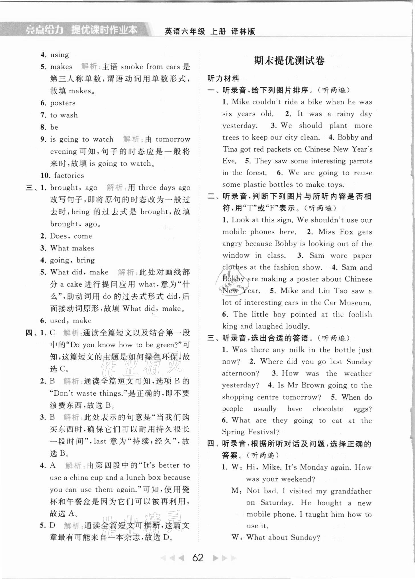 2021年亮点给力提优课时作业本六年级英语上册译林版第62页