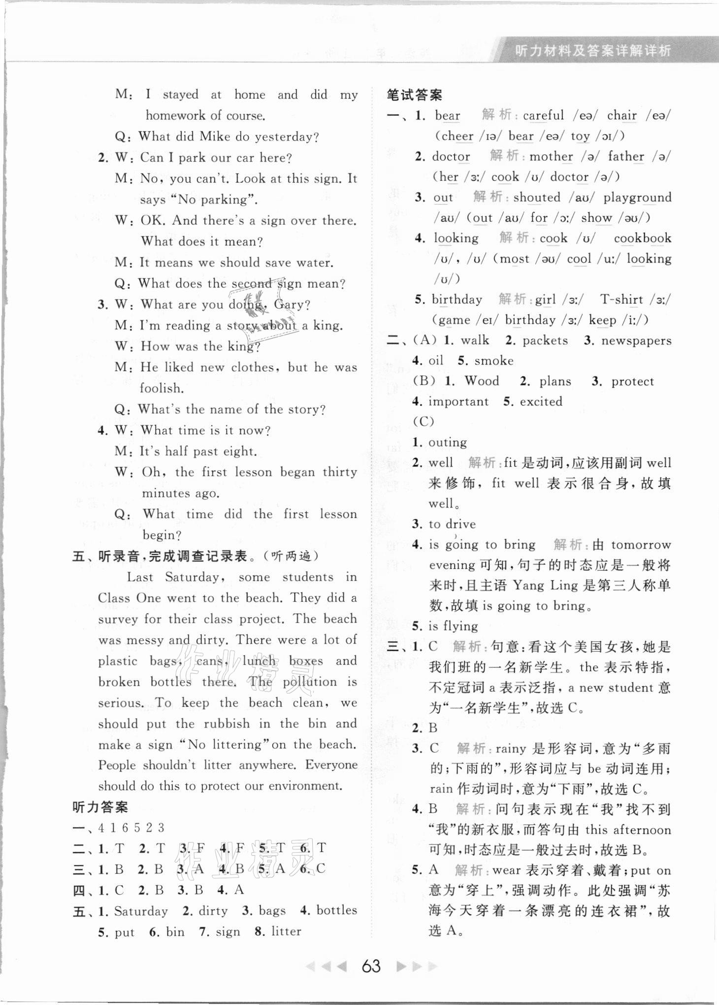 2021年亮点给力提优课时作业本六年级英语上册译林版第63页