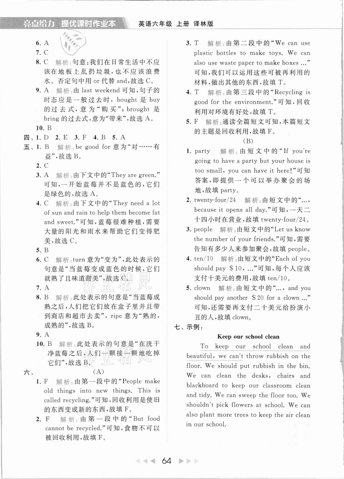 2021年亮点给力提优课时作业本六年级英语上册译林版第64页