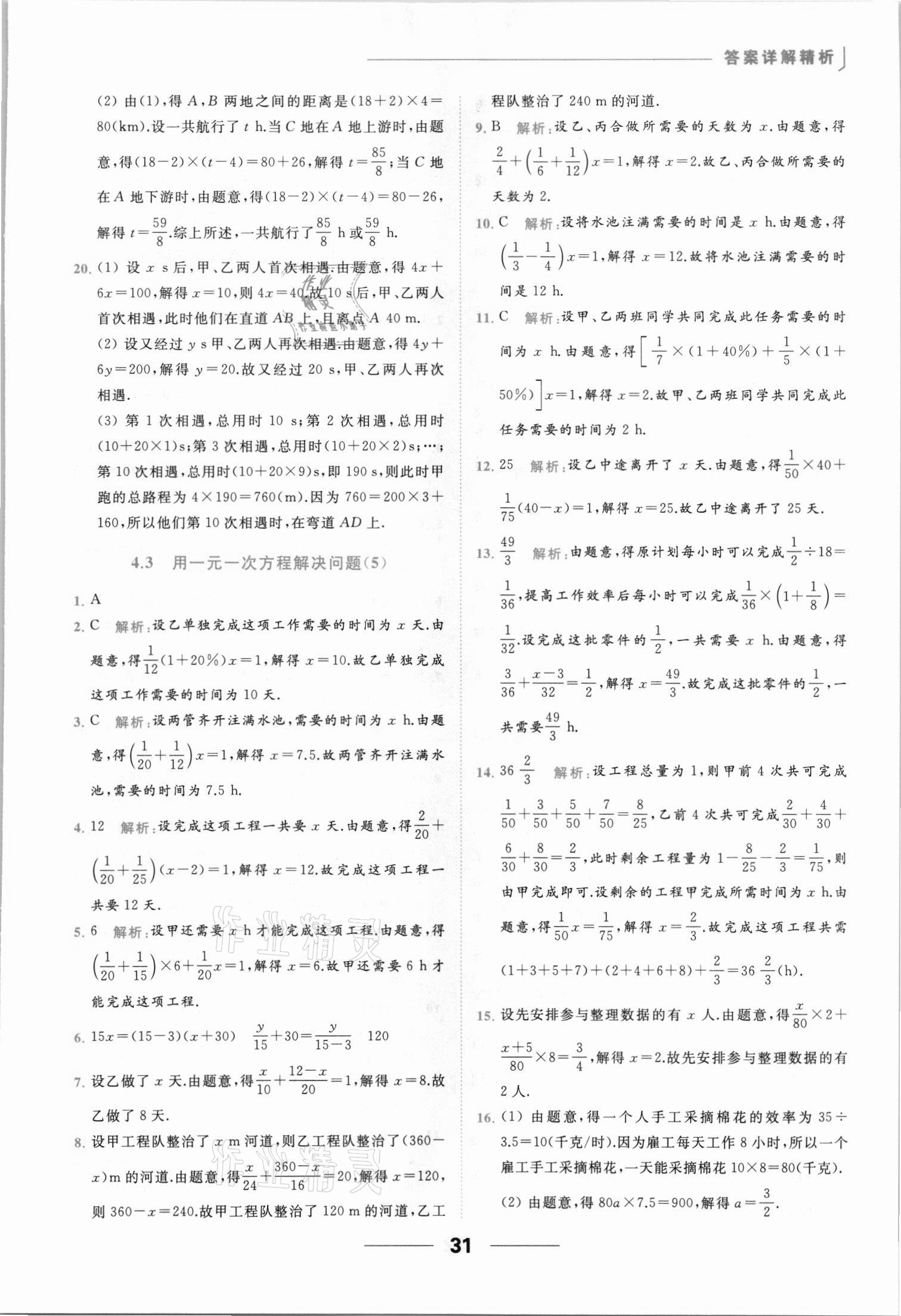 2021年亮点给力提优课时作业本七年级数学上册苏科版参考答案第31页