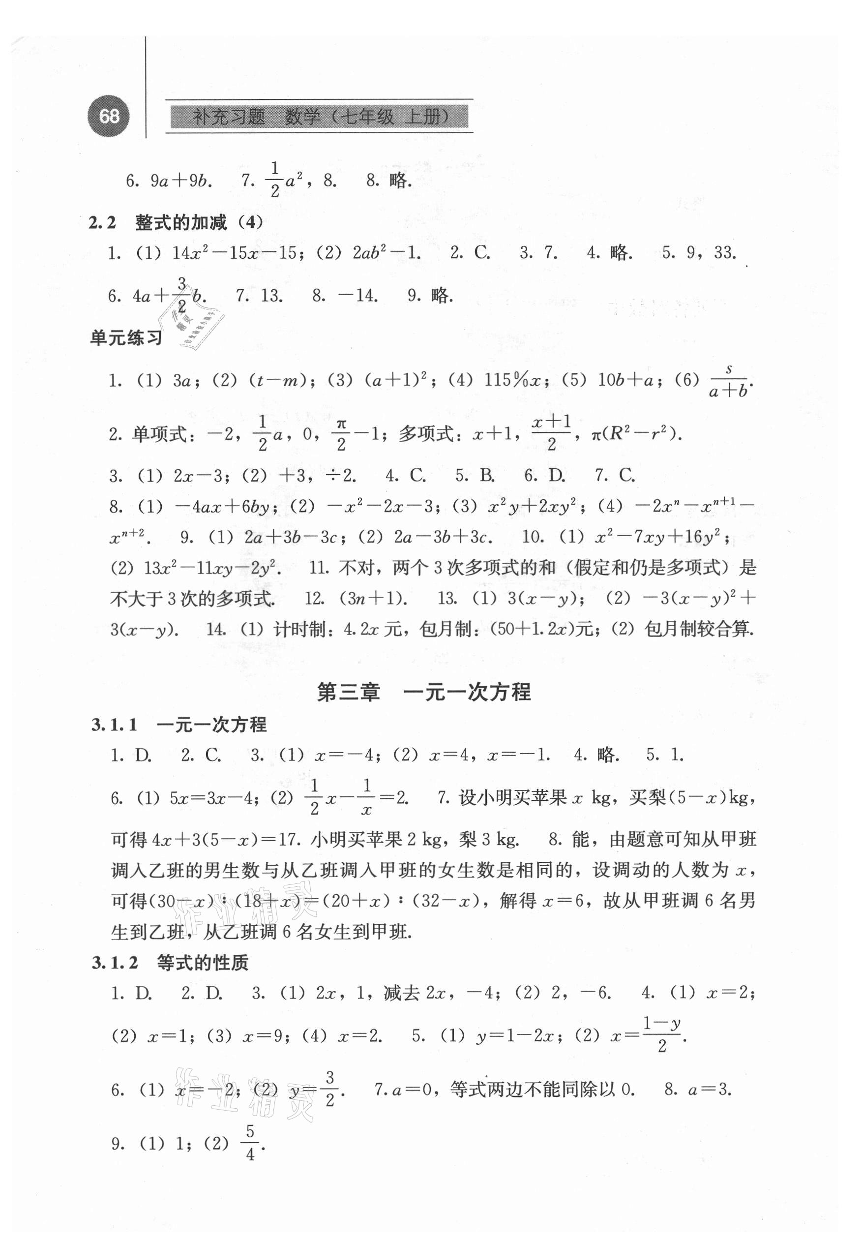 2021年补充习题七年级数学上册人教版人民教育出版社第6页