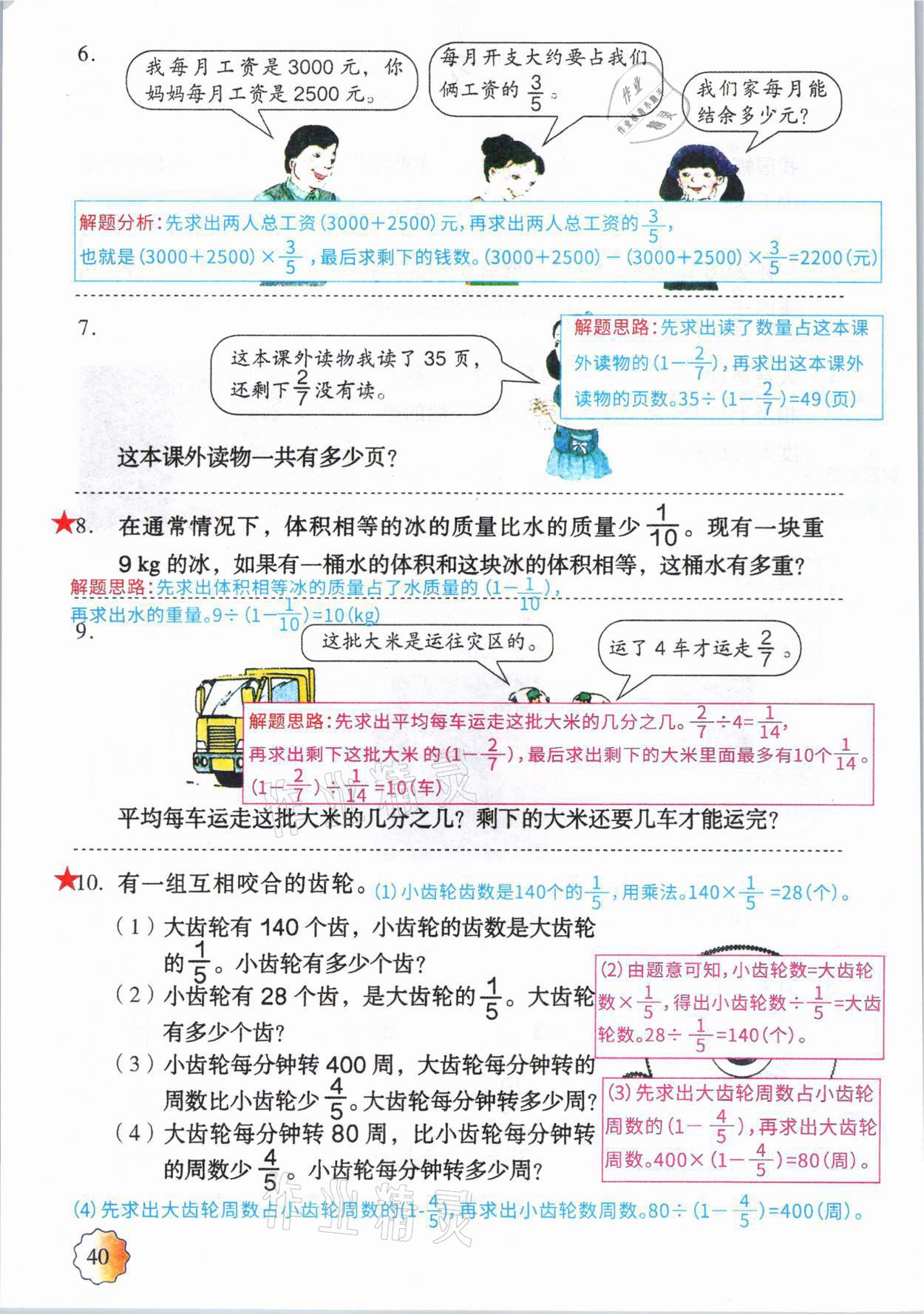 2021年教材课本六年级数学上册人教版参考答案第39页