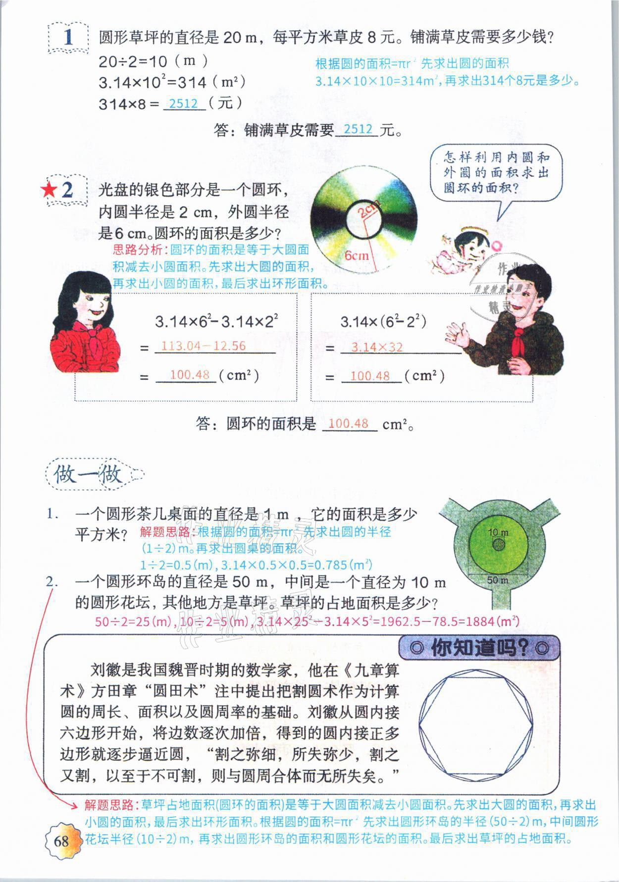 2021年教材课本六年级数学上册人教版参考答案第67页
