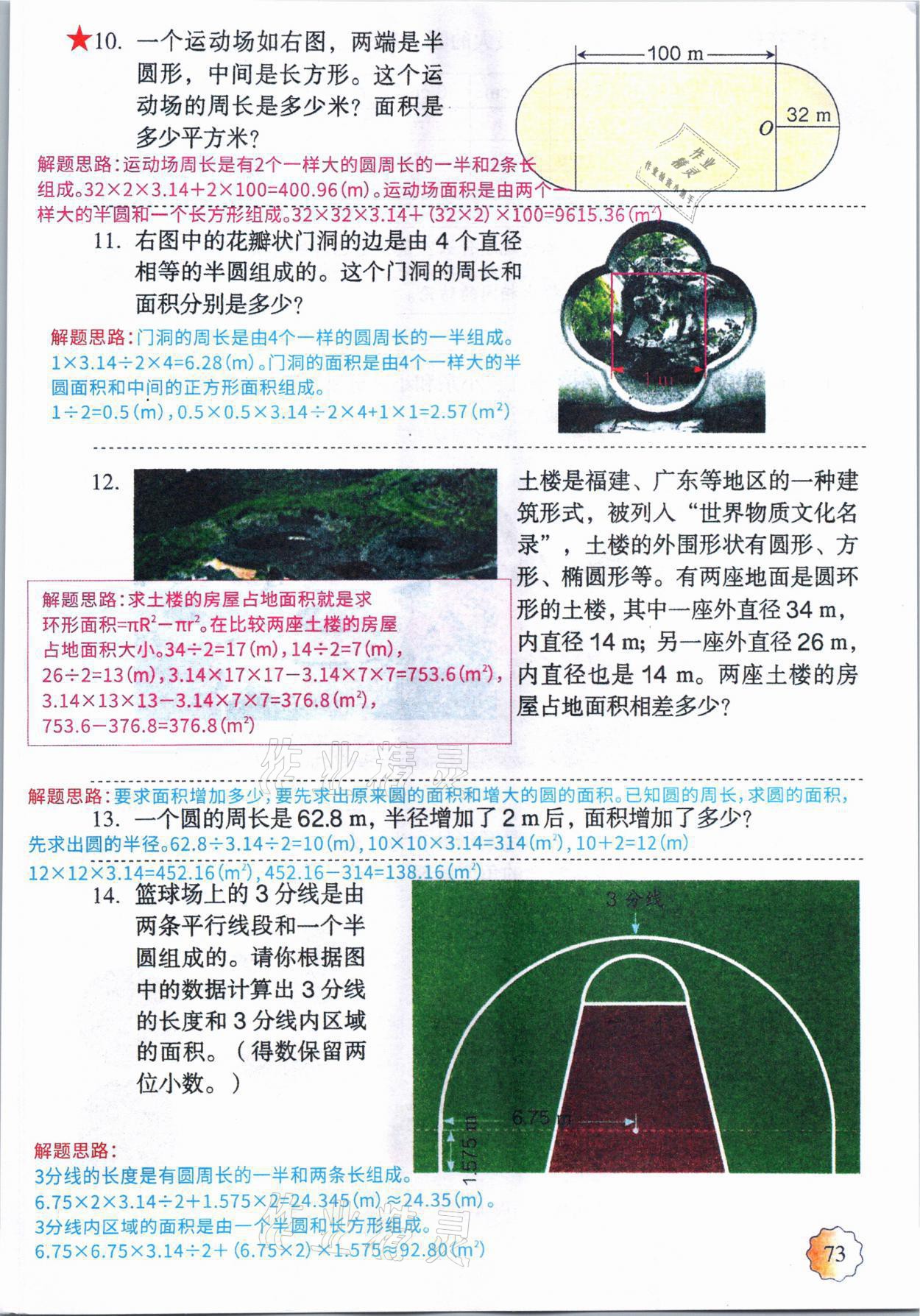 2021年教材课本六年级数学上册人教版参考答案第72页