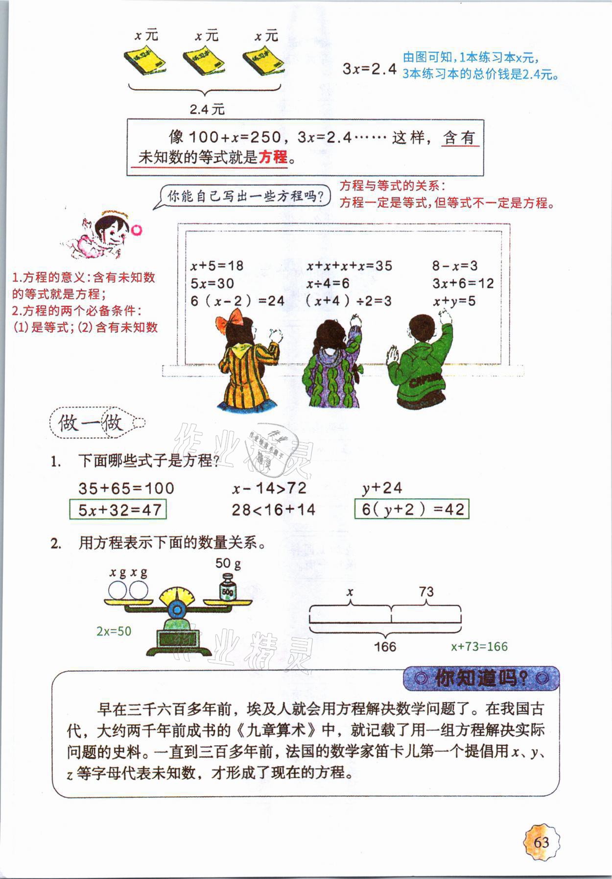 2021年教材课本五年级数学上册人教版参考答案第62页