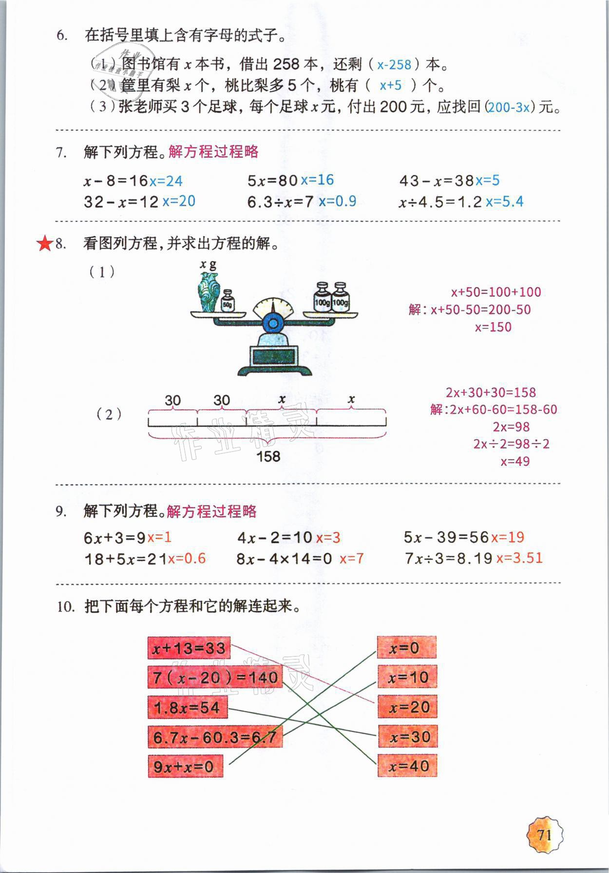 2021年教材课本五年级数学上册人教版参考答案第70页